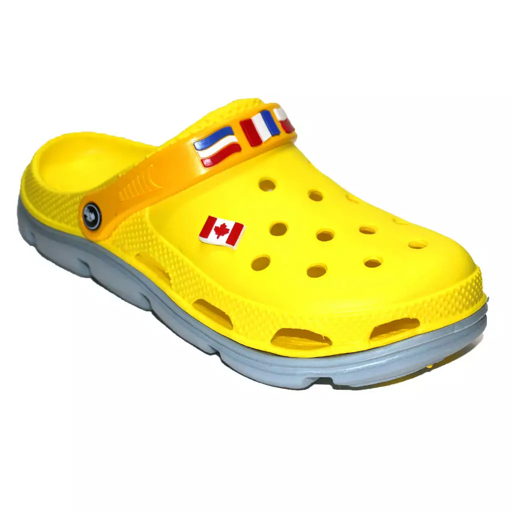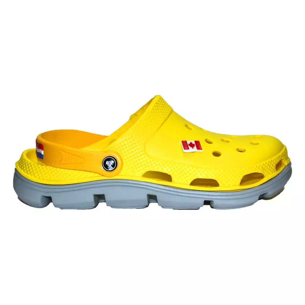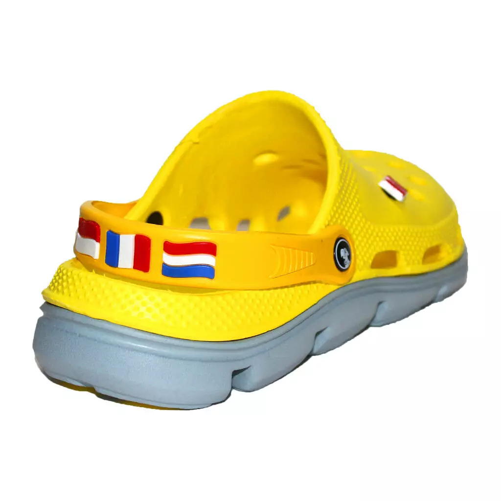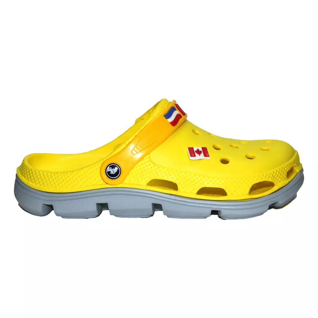 Сабо виготовлені з легкого і гіпоалергенного матеріалу ЕВА, а декорований п'ятковий ремінець - з силікону. Взуття відрізняється легкістю, міцністю, стійкістю до дії бактерій і грибків, не пропускає вологу, легко миється і швидко сохне.