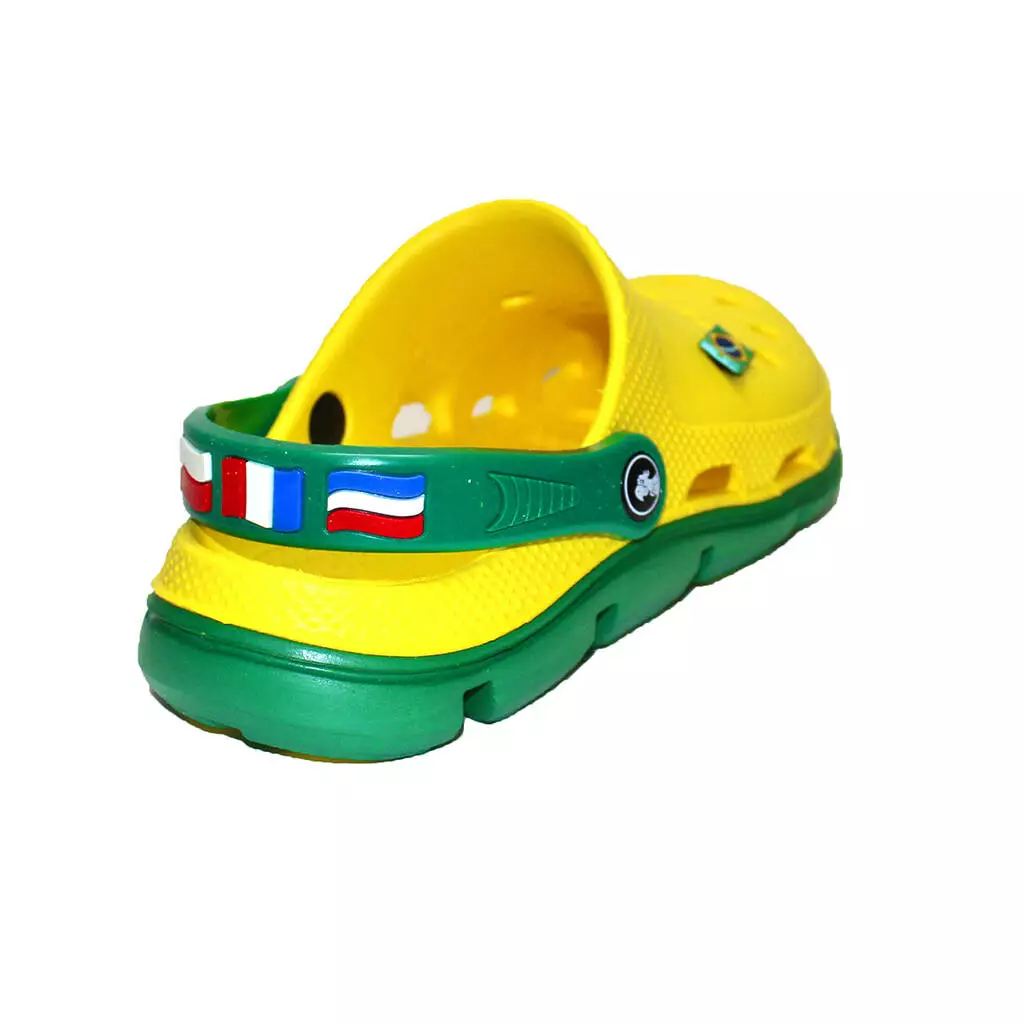 Сабо виготовлені з легкого і гіпоалергенного матеріалу ЕВА, а декорований п'ятковий ремінець - з силікону. Взуття відрізняється легкістю, міцністю, стійкістю до дії бактерій і грибків, не пропускає вологу, легко миється і швидко сохне.