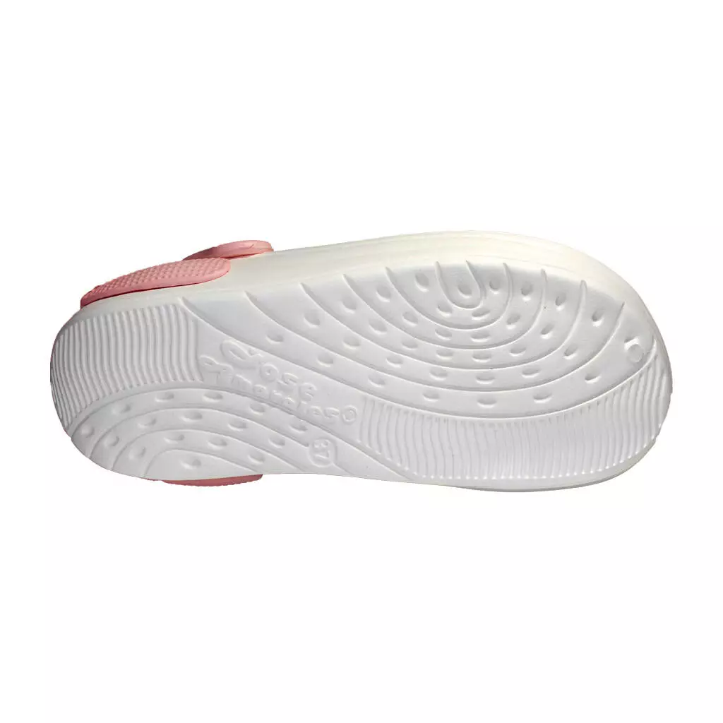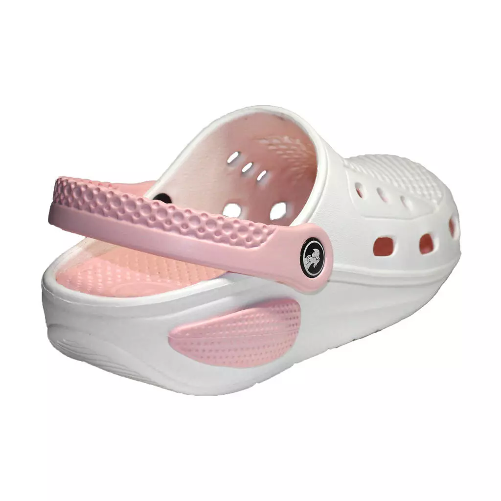 Підошва взуття відмінно амортизує, перфорований верх забезпечує вентиляцію стоп. Перекидний п'ятковий ремінець надійно фіксує взуття на нозі.
