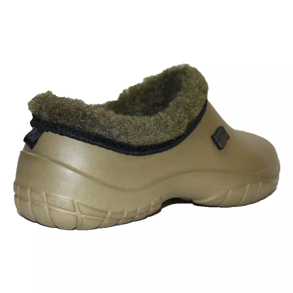 Чоловічі НАПІВОБШИТІ утеплені калоші - взуття на прохолодну дощову погоду і сльоту в осінньо-зимовий період. Калоші суцільнолиті, виготовлені з сучасного полімеру ЕВА. Край взуття обшитий штучним хутром, всередині знімна двошарова хутряна/повстяна устілка.
