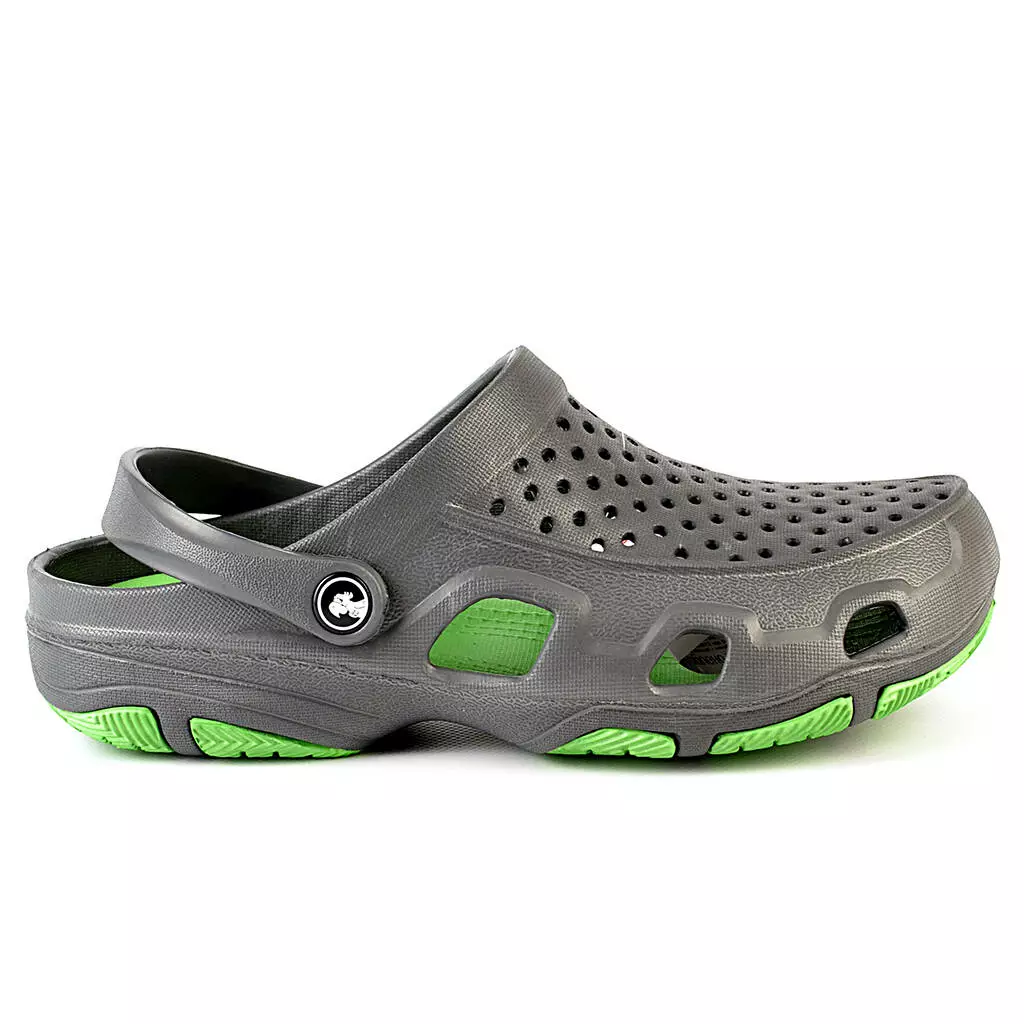 Взуття виробляється з гіпоалергенного та екологічно чистого полімерного матеріалу ЕВА, який відрізняється легкістю, міцністю, стійкістю до дії бактерій та грибків, не має запаху, не пропускає вологу, легко миється та швидко сохне.