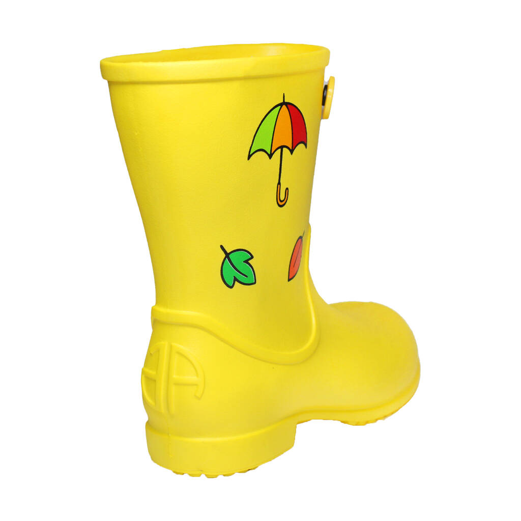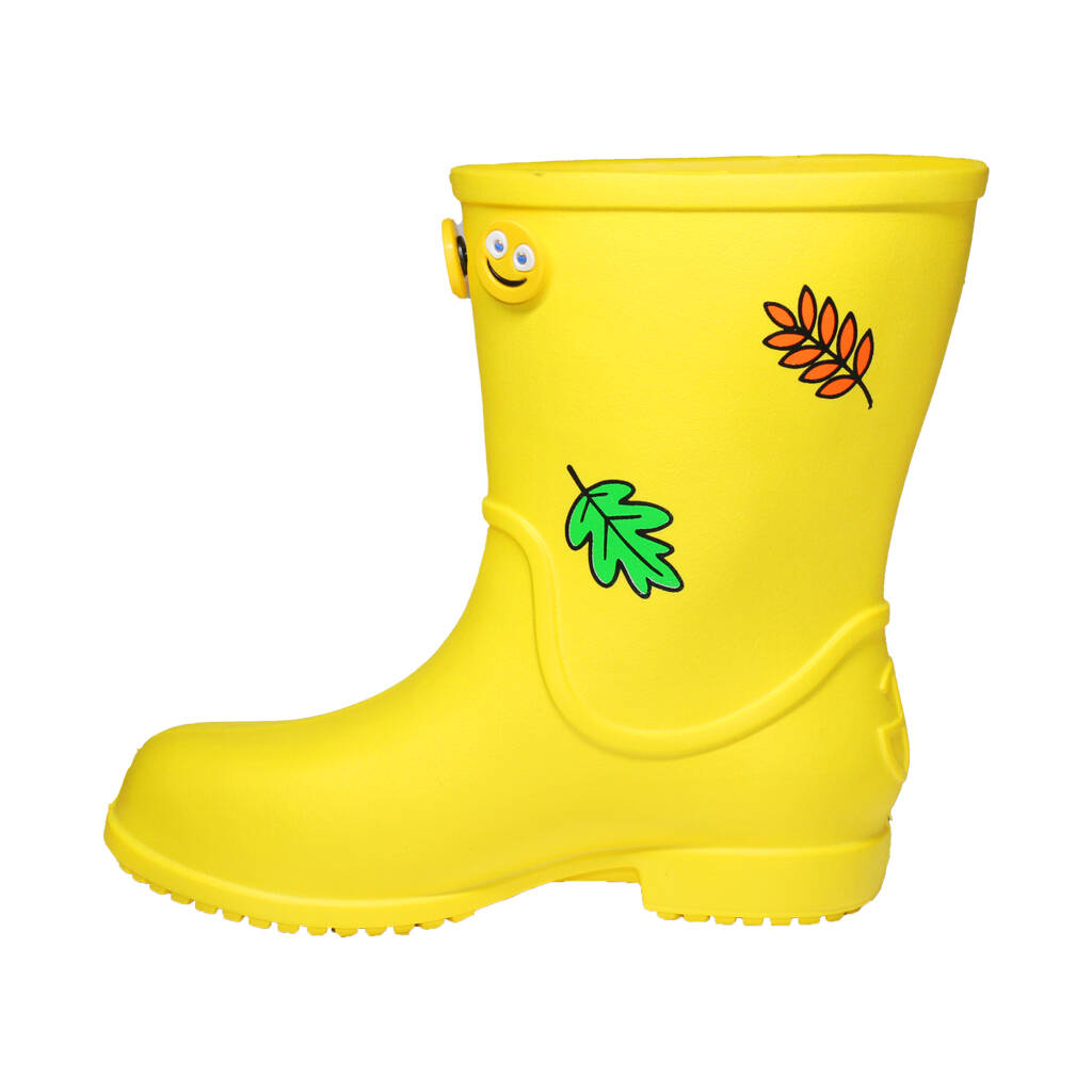 Особливість цієї моделі — різнокольорові наліпки із парасольками та листочками, які роблять взуття ще яскравішим і привабливішим для дітей. Такі чобітки не лише практичні, а й стильні.