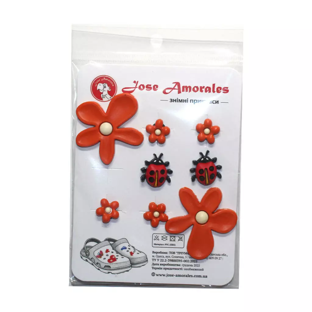 Прикраси легко кріпляться до сабо та іншого взуття або аксесуарів з отворами, надійно фіксуються та міцно тримаються.