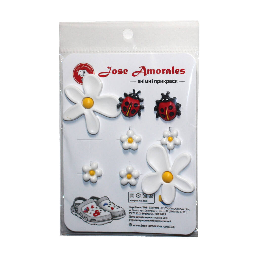 Прикраси легко кріпляться до сабо та іншого взуття або аксесуарів з отворами, надійно фіксуються та міцно тримаються.