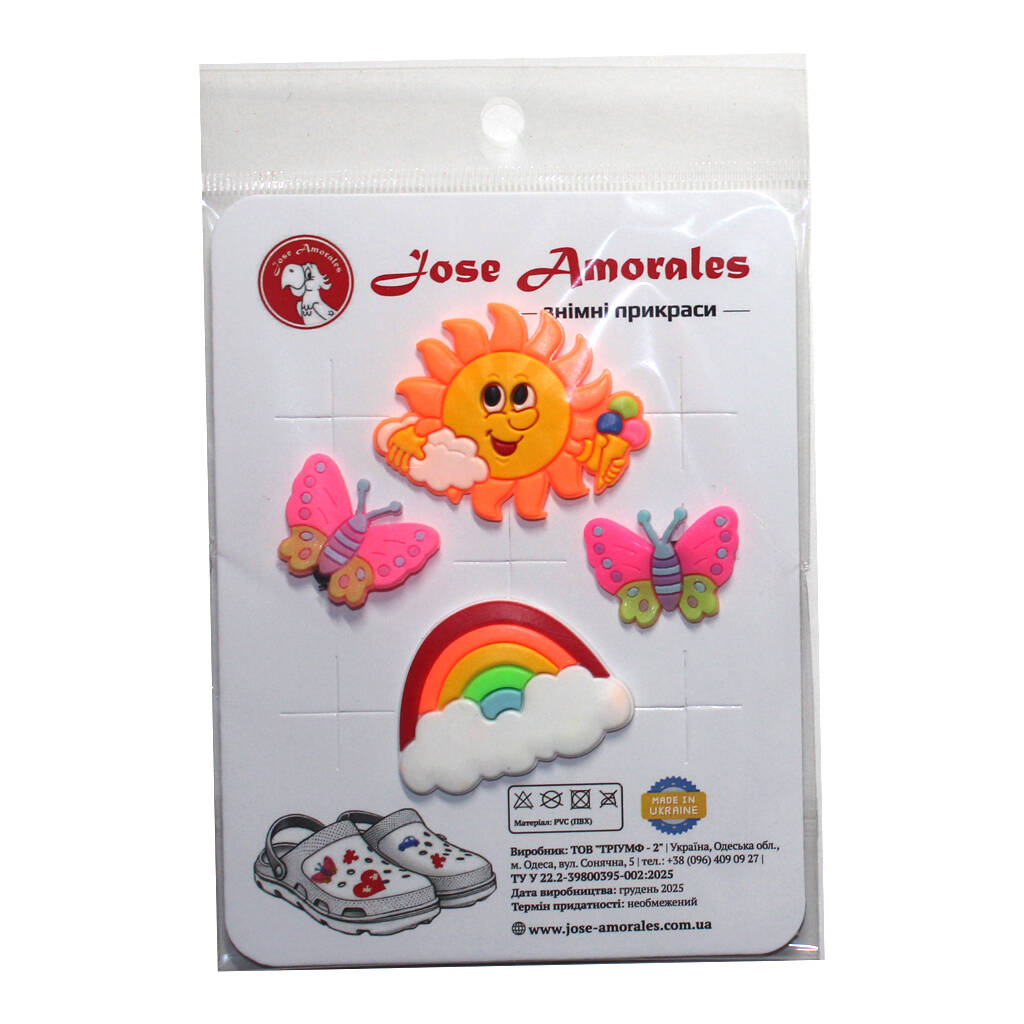 Прикраси легко кріпляться до сабо та іншого взуття чи аксесуарів з отворами, надійно фіксуються, матеріал стійкий до води, бруду, сонячних променів.